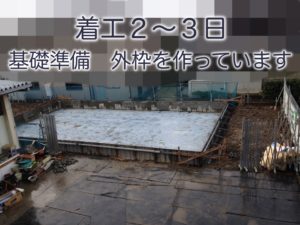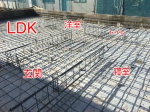 鉄筋は、打ち合わせをした間取りの柱に沿ってつけられていますので計画していた大きさに実感が持てました。