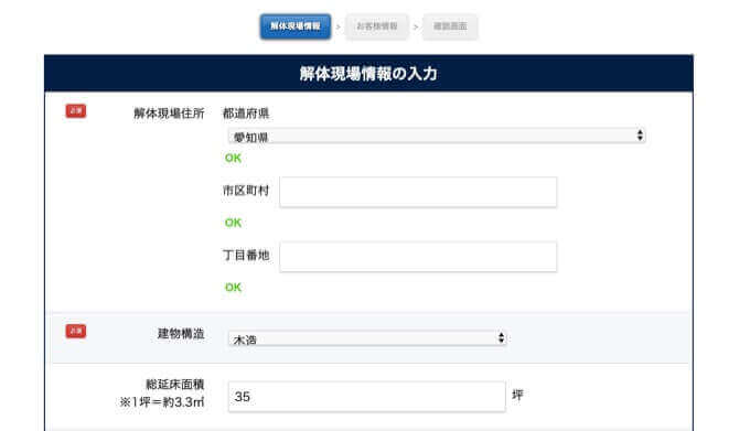 解体現場情報を入力