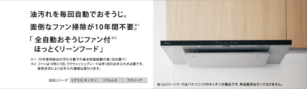 10年間、レンジフード内部にあるファンのお掃除が要らないことが特徴です。