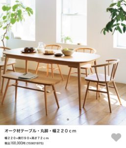 ナチュラルなイメージなのでオーク材のテーブルが多いです。