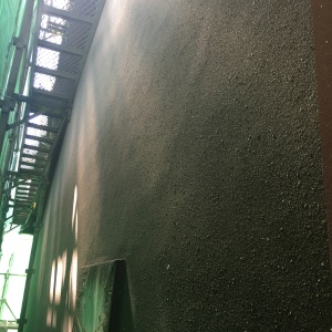 吹付け塗装時の気温、湿度、日当たりなど、環境的な要因があり、均一に塗装するのは、担当した左官の技量によるところがあります。