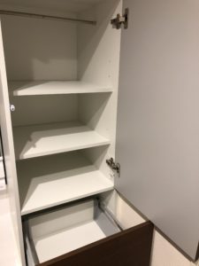 横には、収納棚をつけています。