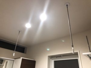 天井に室内干しのためのホスクリーンをつけました。